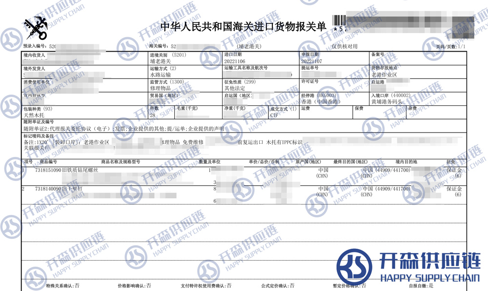 一、舊干壁釘退運(yùn)返修進(jìn)口報(bào)關(guān)代理案例詳情